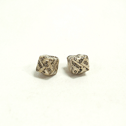 Brincos feitos com o papel de jornal transformado em formato de cubos brancos.