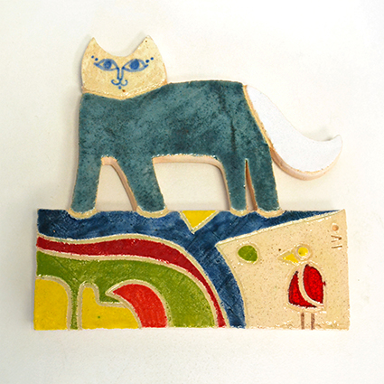 Gato Azul Petróleo em cerâmica, uma obra do artista Ivo Correia. Peças decorativas muito coloridas, uma seleção para decorar o seu lar. Podem encontrar mais obras deste autor na nossa loja.