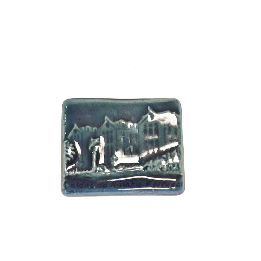 Pavilhões do Parque Petróleo, é um pequeno íman em cerâmica vidrada. Um pequeno tributo aos tão icónicos pavilhões do Parque D. Carlos I, dos finais do século XIX da autoria de Rodrigo Berquó em Caldas da Rainha. Pode encontrar outras cores desta peça na nossa loja.