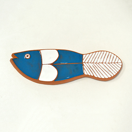 Peixe Azul em cerâmica, uma obra do artista Ivo Correia. Peças decorativas muito coloridas, uma seleção para decorar o seu lar. Podem encontrar mais obras deste autor na nossa loja.