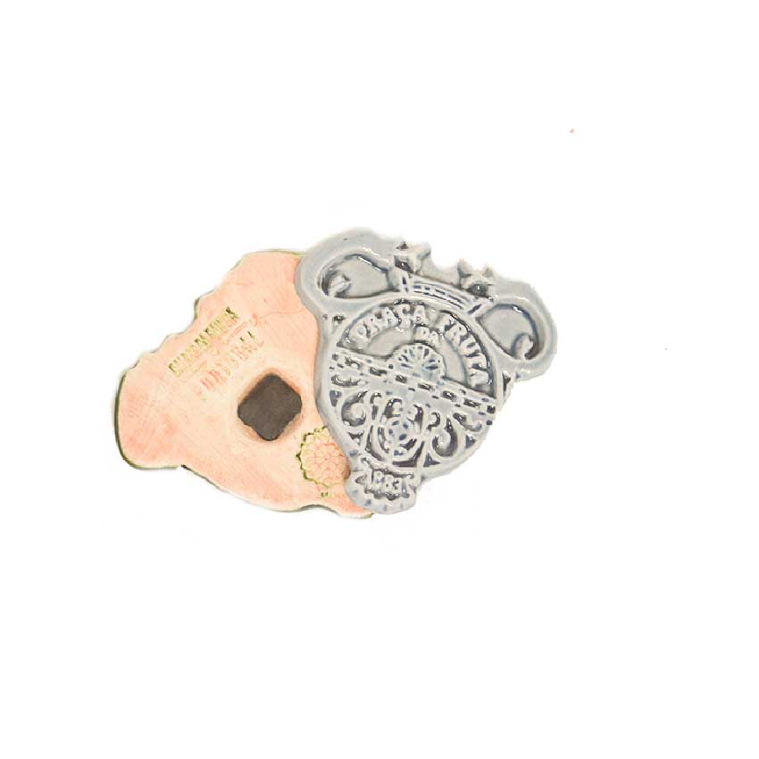 Praça da Fruta Cinzento, é um pequeno íman em cerâmica vidrada. São um pequeno tributo ao tão icónico mercado da praça da fruta que ocorre na cidade de Caldas da Rainha todos os dias. Pode encontrar outras cores desta peça na nossa loja.