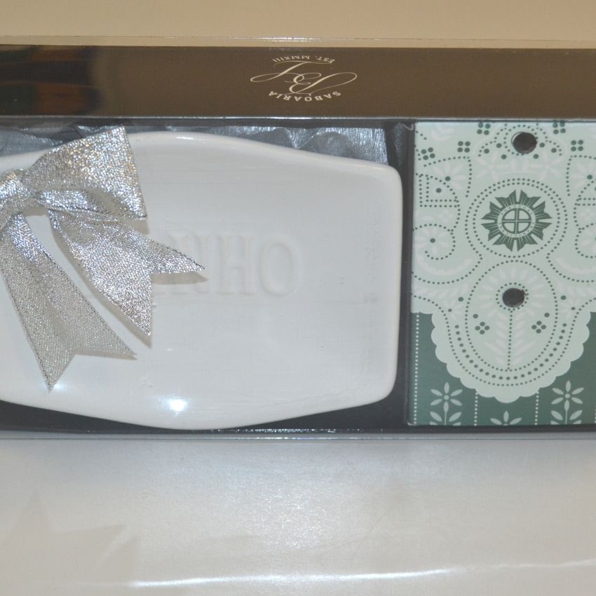 Saboneteira Tradicional, acompanhada por um sabonete 150 gramas de alecrim. Uma colecção “Ponto Tibaldinho”, herança com sentimento e propósito, inspirada nos bordados típicos de Viseu. Outros sabonetes disponíveis na nossa loja.