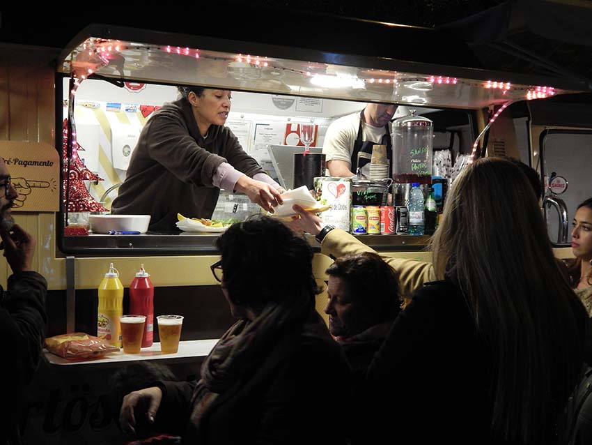 A variedade de carros é proporcional à diversidade de sabores e não faltam sugestões originais. A Merenda Portuguesa, por exemplo, diz-nos que é possível comer um cozido à portuguesa, bacalhau espiritual, ou salsichas com couve lombarda sem pratos nem talheres. Mas como? Transformando estes pratos típicos portugueses em recheios que são acondicionados num pão de trigo e centeio em forma de “bolsa”.