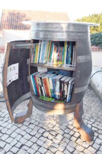 Um barril de 100 litros foi recuperado e transformado para receber a mais pequena biblioteca da Sancheira Grande. Dentro do recipiente de madeira é possível encontrar perto de uma centena de livros, entre policiais, romances, ensaios e infantis, dos mais de mil que já foram doados para o projeto e que se encontram na biblioteca do Complexo Escolar do Alvito.