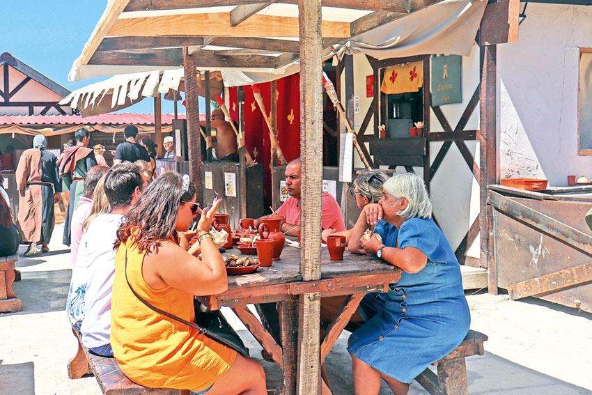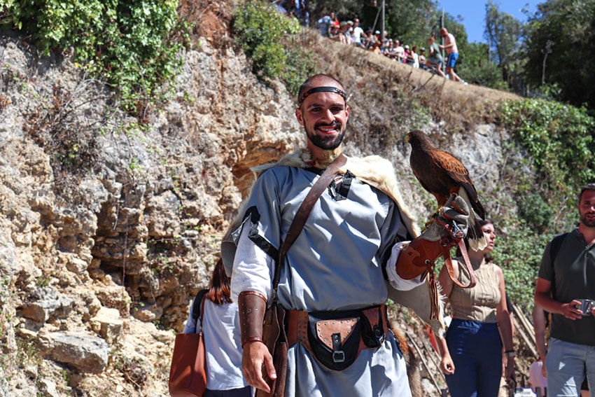 Enquanto seguiam caminho rumo à cerca, Francisco Salvador, que por estes dias é D. Francisco da França, continuava a apresentar o torneio medieval e a avaliar qual o melhor cavaleiro… ainda que muitas vezes indo contra a vontade do público. Os torneios são compostos por combates a cavalo e apeados. Se os primeiros imprimem um maior impacto e ação, os segundos traduzem-se num “confronto direto e o povo gosta disso”, conta o mestre de liça. A anteceder os torneios há demonstrações e convidam o público para experimentar, por exemplo, o peso da espada e a fazer alguns movimentos, e depois há demonstrações de cetaria (arte de treinar aves para a caça), muito utilizada na Idade Média.