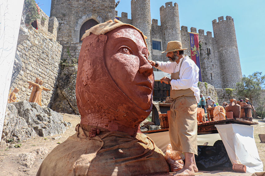 Na edição, que tem como grande enfoque o casamento entre D. Afonso e Dona Urraca de Castela, a monarca está em destaque na peça de grandes dimensões que está a ser feita ao vivo pelo escultor Carlos Oliveira. Ao todo, pretende utilizar três toneladas de barro no busto que contará com cerca de 2,8 metros de altura. Na soalheira tarde de sábado, o artista tinha de molhar o barro com frequência para o conseguir trabalhar, uma dificuldade de quem “trabalha na rua”, mas que não o desmotiva, antes desafia. Por esta altura já tinha utilizado perto de 1900 quilos de barro na peça, cuja estrutura foi feita em madeira e depois levou uma primeira camada de barro e palha, que é uma fibra natural. No final, quando estiver terminada, vai levar uma outra camada, com barro, estrume de vaca, óleo de peixe e óleo de linhaça, que funciona como isolamento natural, permitindo-lhe perdurar no local o máximo tempo possível, como um marco deste medieval e um novo local a visitar. Para além do trabalho artístico, Carlos Oliveira passa também muito do seu tempo a explicar o que faz e como o faz, divulgando a sua arte.