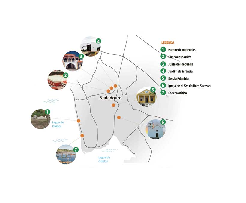 Equipamentos públicos: Centro de Apoio Social do Nadadouro; Junta de Freguesia, pavilhão gimnodesportivo
