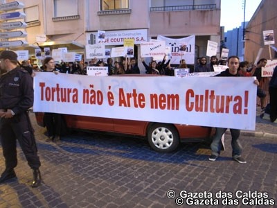 Depois do simbólico protesto em frente à sede do CDS-PP, em Lisboa, a associação Animal rumou no passado sábado, 24 de Julho, até às Caldas para contestar a corrida de touros promovida pelo CDS-PP e mostrar ao partido que “a população e os votantes estão a ver esta vergonhosa tourada do CDS”. Mas a manifestação começou bem antes da reunião dos activistas da Animal, pois ainda durante a manhã, o deputado do Bloco e Esquerda, Heitor de Sousa, distribuiu comunicados aos caldenses, a darem conta do seu apoio à acção. O CDS-PP ficou “surpreendido” com a atitude do BE, e acusa-o de “aproveitamento político”.