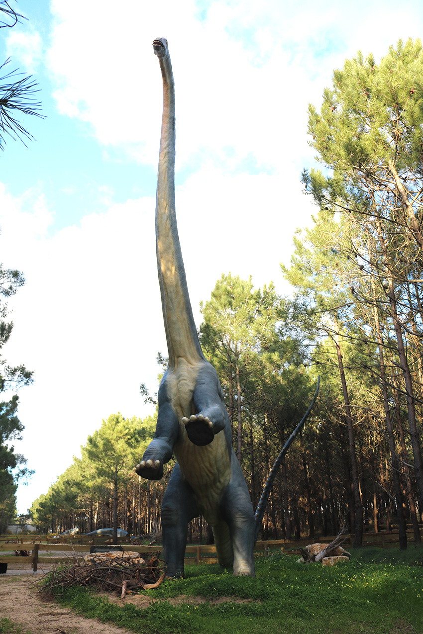 Pelo caminho encontramos um Lourinhasaurus, o maior dinossauro do parque, com 23 metros. Pesa cinco toneladas e a montagem das nove partes que o constituem foi uma aventura porque era preciso encaixá-las com grande precisão, mas manobrando uma grua.