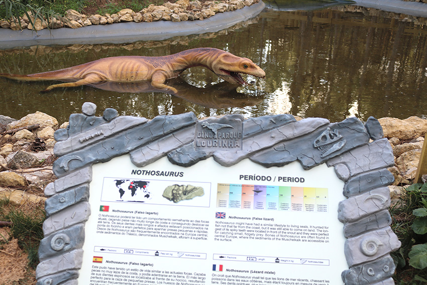 Cada animal tem uma placa explicativa onde se pode ficar a saber a que período pertence, o comprimento, o peso e uma breve descrição. As placas estão em quatro línguas: português, inglês, francês e espanhol.