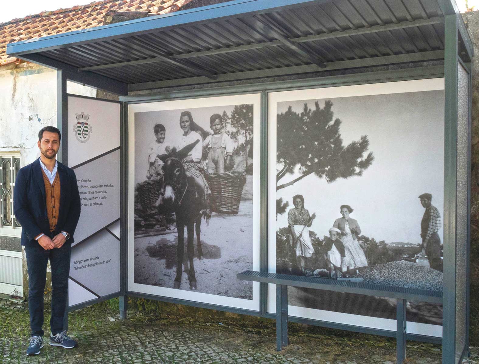 Os abrigos de passageiros no Vau não servem apenas para esperar o autocarro. As “paredes” mostram histórias da história da localidade
