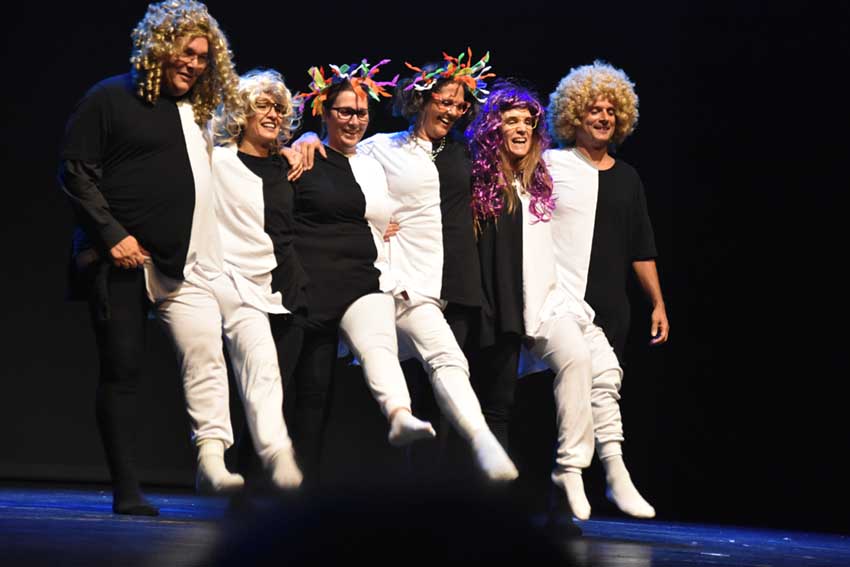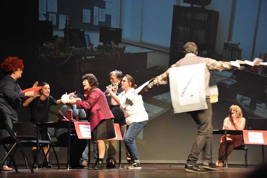 Um grupo de docentes interpretou uma peça de teatro muito divertida onde parodiava com a flexibilidade. Mas o que é isso da flexibilidade curricular? “Ainda estamos a aprender o que é, foi lançada nas escolas em Setembro sem que o soubéssemos”, contou, no final do espectáculo o professor, António Xavier, que fez a letra da música do sketch. O também coordenador do grupo de trabalho que organizou a festa de Natal especificou que a flexibilidade é a possibilidade das disciplinas cruzarem conteúdos e daí resultarem trabalhos, dando como exemplo a temática da poluição que pode juntar as disciplinas da Biologia, Física, Química, Filosofia e as Ciências Sociais.