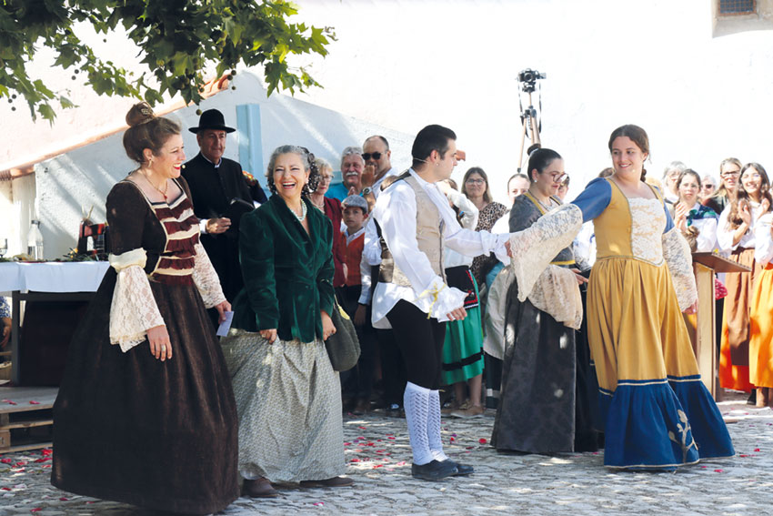O Auto das Três Rainhas, um original escrito para esta recriação por Nuno Ferreira, técnico superior do município, serviu de enredo para a participação de todos os grupos, que ensaiaram a participação ao longo de muitos serões dos últimos três meses. As monarcas, sentadas numa grande mesa onde partilharam um almoço real, foram recebendo as delegações de aldeões, que partilharam as suas histórias, lendas e marchas e mostraram ainda como se jogavam os jogos tradicionais, como o jogo da malha, por exemplo. Dª Maria Pia de Saboia (1862/1889), esposa do Rei D. Luís I, Dª Carlota Joaquina de Bourbon (1816 a 1826), esposa do Rei D. João VI, e Dª Amélia de Orléans (1889 a 1908), esposa do Rei Carlos I e última rainha portuguesa, acompanhadas pelo padre da paróquia, testemunharam a riqueza sociocultural de uma freguesia que passou a integrar o concelho do Bombarral em 1914, após a implantação da República. “São as três rainhas que são referenciadas na história com passagens por esta freguesia”, explicou á Gazeta Nuno Ferreira.