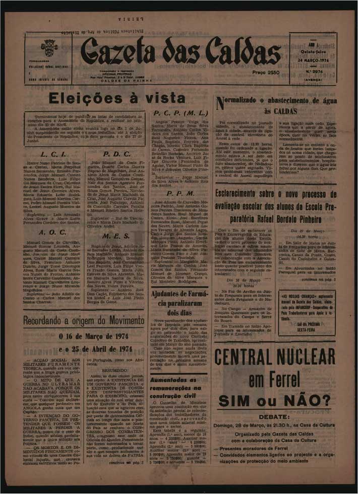 A maior causa em que a Gazeta das Caldas se terá envolvido diretamente foi a luta contra a instalação de uma central nuclear em Ferrel, apoiando a população na resistência a essa ideia avançada pelo poder central da época