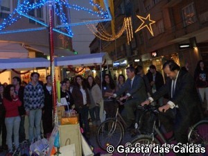 Durante a inauguração Hugo Oliveira e Tinta Ferreira pedalaram para iluminar a árvore sustentável que está instalada na Rua Dr. Miguel Bombarda onde irão decorrer várias das iniciativas relacionadas com a época natalícia.