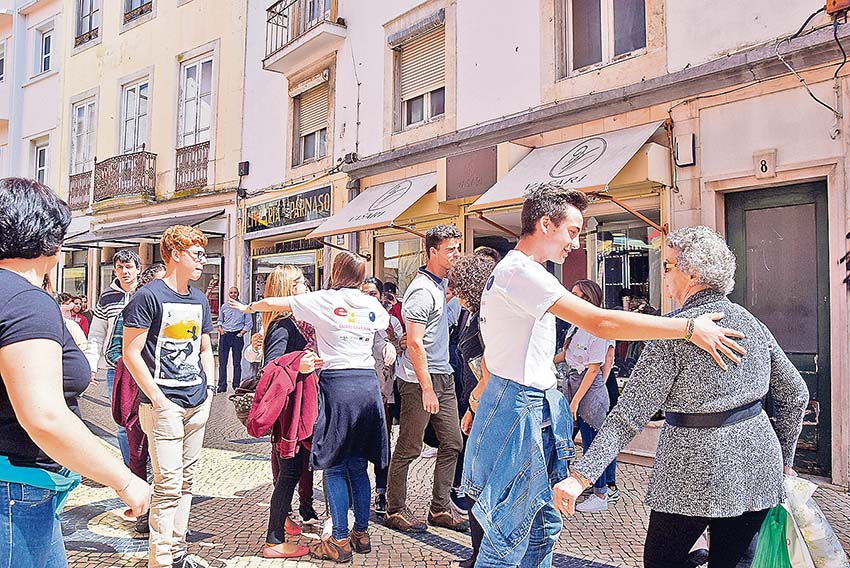 “Posso dar-lhe um abraço?” A pergunta foi repetida centenas de vezes pelos alunos da ETEO durante a manhã de sexta-feira, 20 de Maio, na Rua das Montras. Já a resposta, mais tímida e com alguma relutância inicial, passou a ser bastante calorosa à medida que os transeuntes já iam sabendo da iniciativa que ali estava a decorrer.
