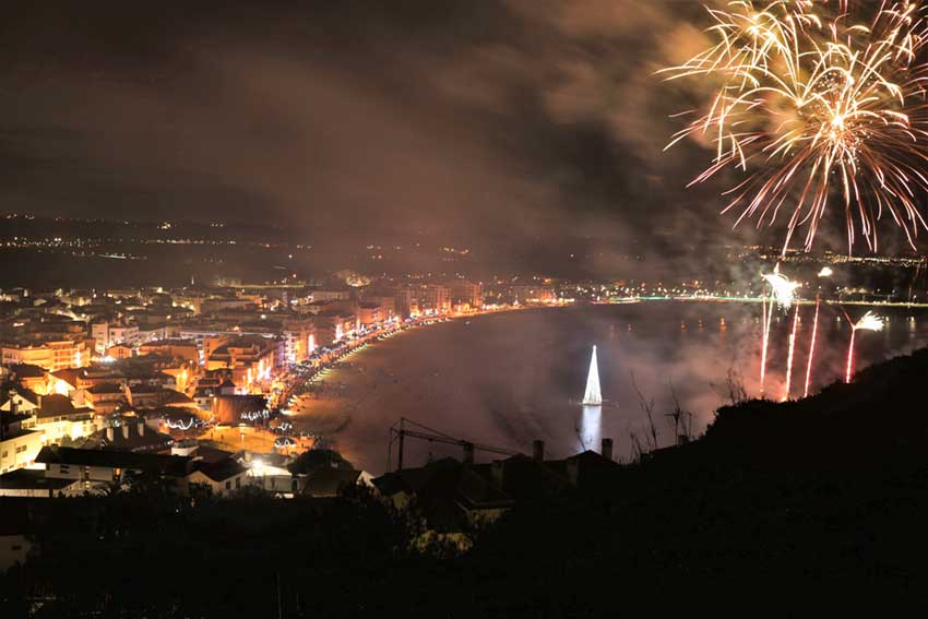 Mal se acende a árvore, larga-se o fogo-de-artifício, que dura alguns minutos e dá cor ao céu. Uns preferem ver o espectáculo na marginal, sentados no paredão ou em pé, outros apreciam-no das varandas dos apartamentos e há também os que não dispensam sentar-se na areia.
