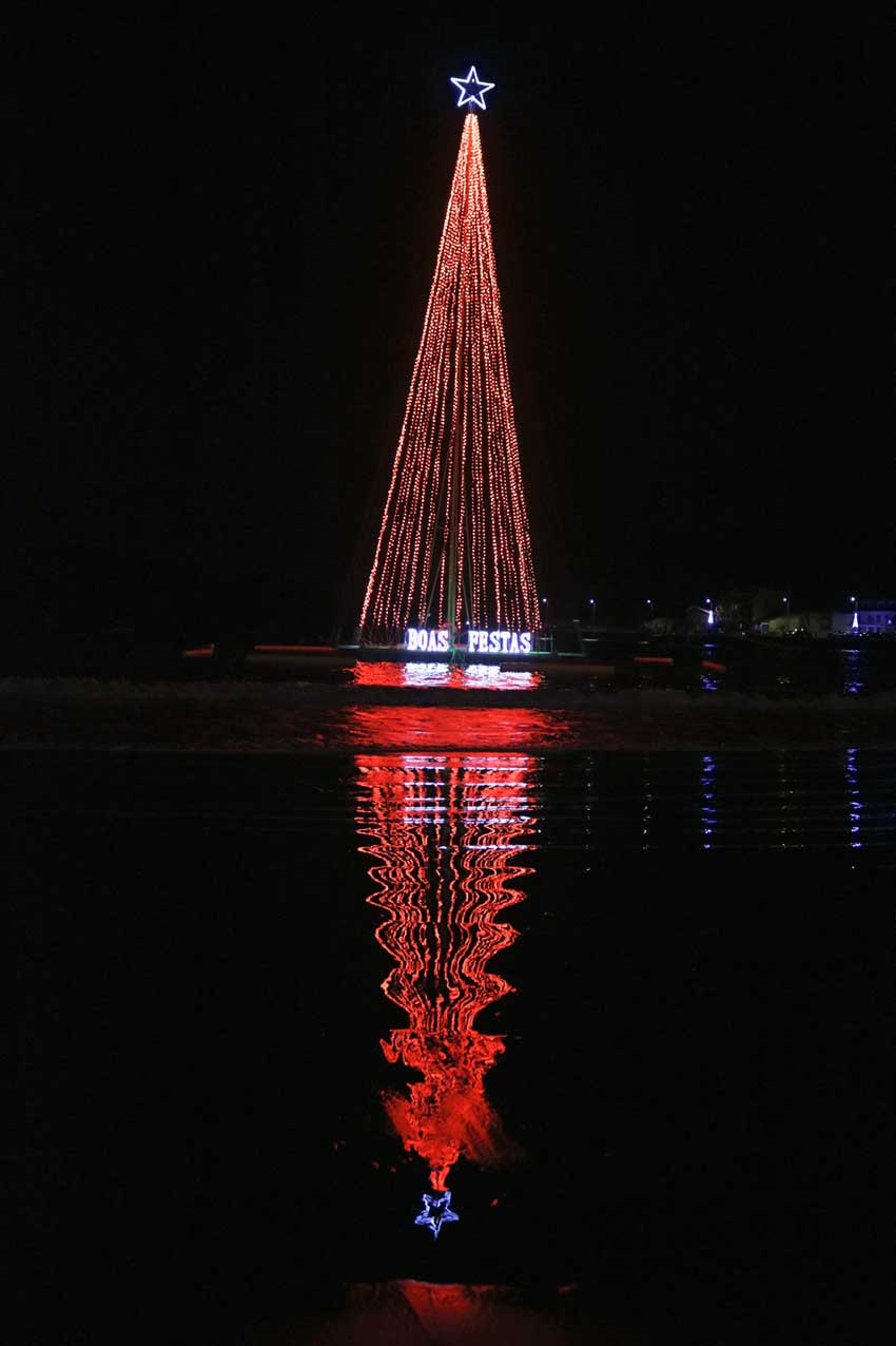 Na água e nas margens é possível ver o reflexo do adereço com 25 metros e cuja estrutura se mantém a mesma do ano passado. O que muda neste Natal é a própria iluminação, que tem mais movimento e cores.