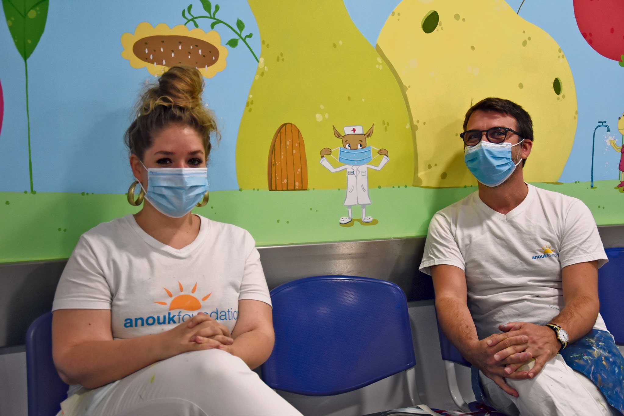 O trabalho foi realizado em três semanas por dois pintores da Fundação Anouk. Kara e Guillaume desenharam e pintaram frutas, mas também bonecos a interagir com os equipamentos colocados nas várias salas e outros que ensinam, de forma divertida, como tomar banho, lavar os dentes e as mãos. Na sala de entrada do serviço, está a história da fundação da cidade.