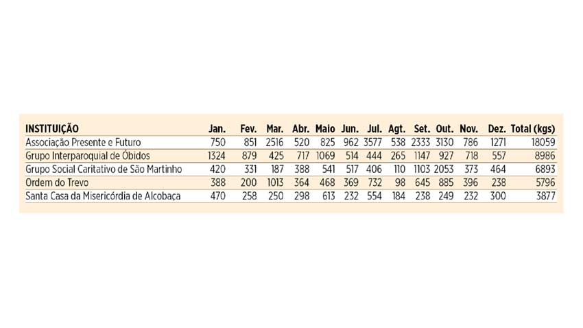 Com 6,8 toneladas, o Grupo Social Caritativo da Paróquia de São Martinho do Porto, do concelho de Alcobaça, ficou na 3ª posição deste ranking do Oeste.