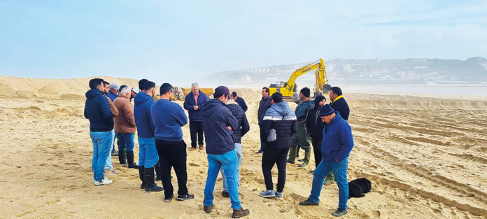 Os pescadores e mariscadores concentraram-se junto às máquinas que estão a trabalhar para relocalizar a aberta