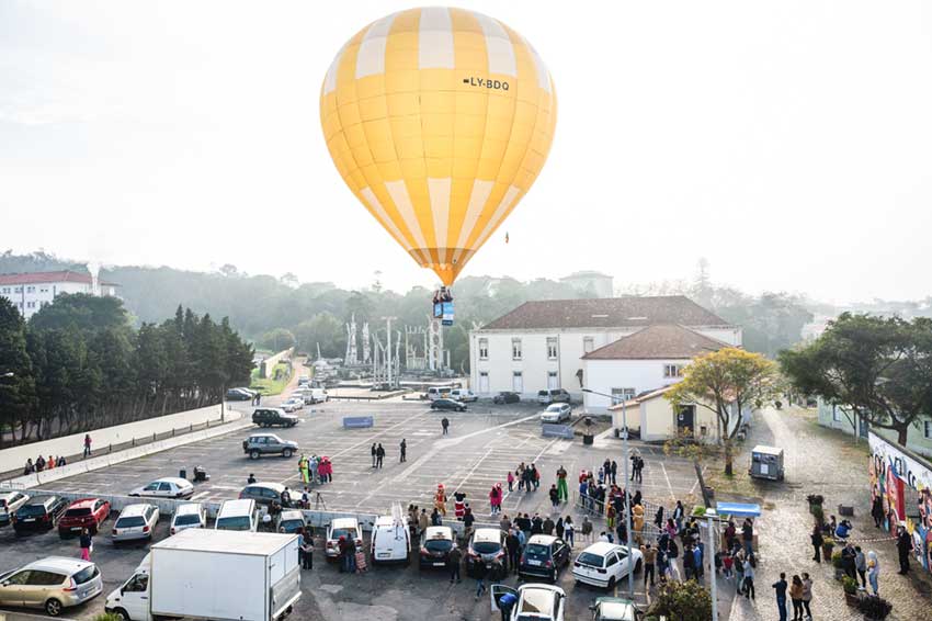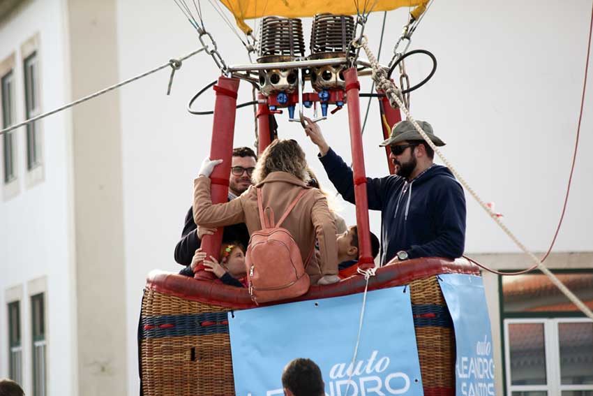 O imponente balão amarelo subia cerca de 50 metros no ar, levando no seu cesto entre três a cinco pessoas, de cada vez, para uma experiência que durava cerca de cinco minutos. No solo, o Pai Natal, os seus duendes e outros figurantes animavam o espaço enquanto a fila para andar no balão crescia.