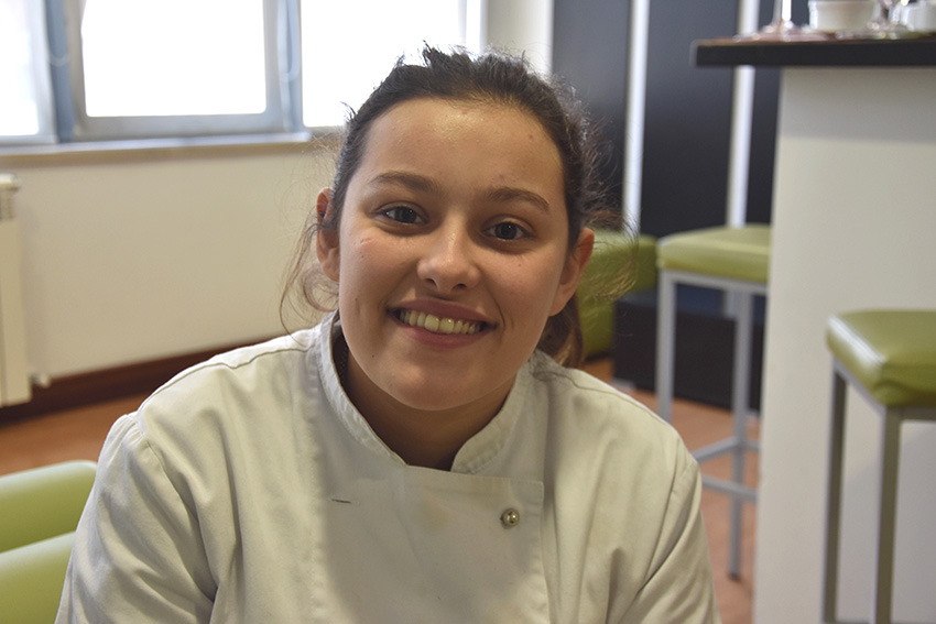 A mãe foi chefe de cozinha fria (gelados) na Suíça, pelo que é de família o gosto pela área. A jovem, que gosta particularmente de trabalhar com massas, destaca a experiência que tem ganho durante o curso. No futuro gostaria de trabalhar por conta própria numa pastelaria. Mas antes, quando acabar o curso, quer trabalhar nos cruzeiros, durante dois a três anos, para ganhar experiência, conhecer a cozinha de outros países e viajar. A região norte do país ou Cascais são as opções que põe para depois se fixar. [/showhide]