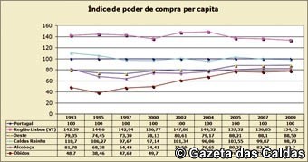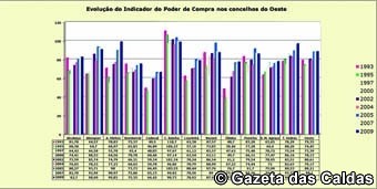 Gazeta das Caldas publica os dados do poder de compra dos concelhos da região Oeste e de alguns concelhos do distrito de Leiria, bem como os valores parciais das regiões desta área, como do Pinhal Litoral, Pinhal Interior Sul e Norte, permitindo antever as dificuldades por que iremos passar, apesar de estes números ainda não espelharem os desenvolvimentos mais recentes da crise.
