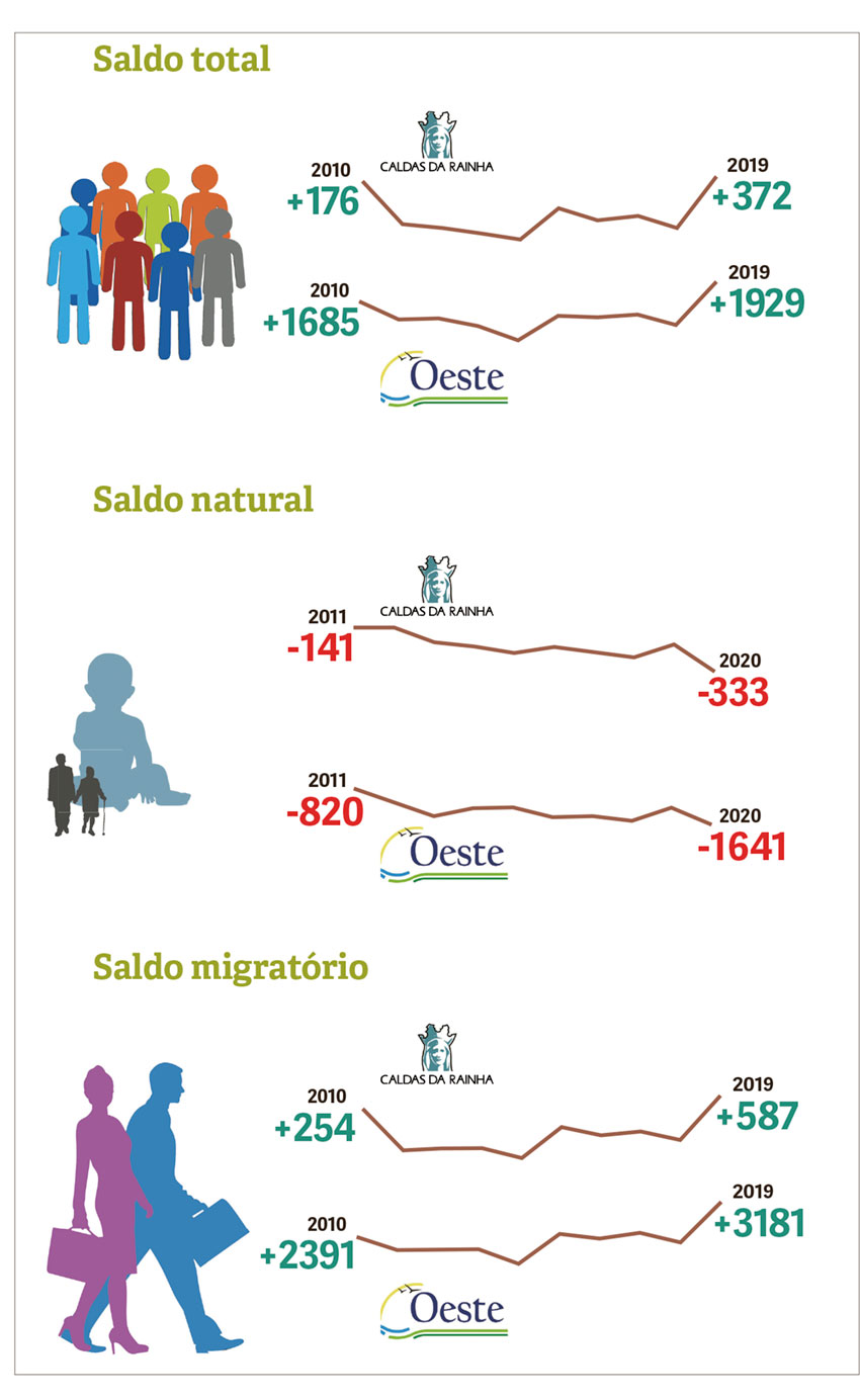 Entre o saldo natural e o saldo migratório, o concelho das Caldas tem vindo, segundo o Pordata, a ganhar população. Migrações “compensam” o facto de existirem mais óbitos do que nascimentos