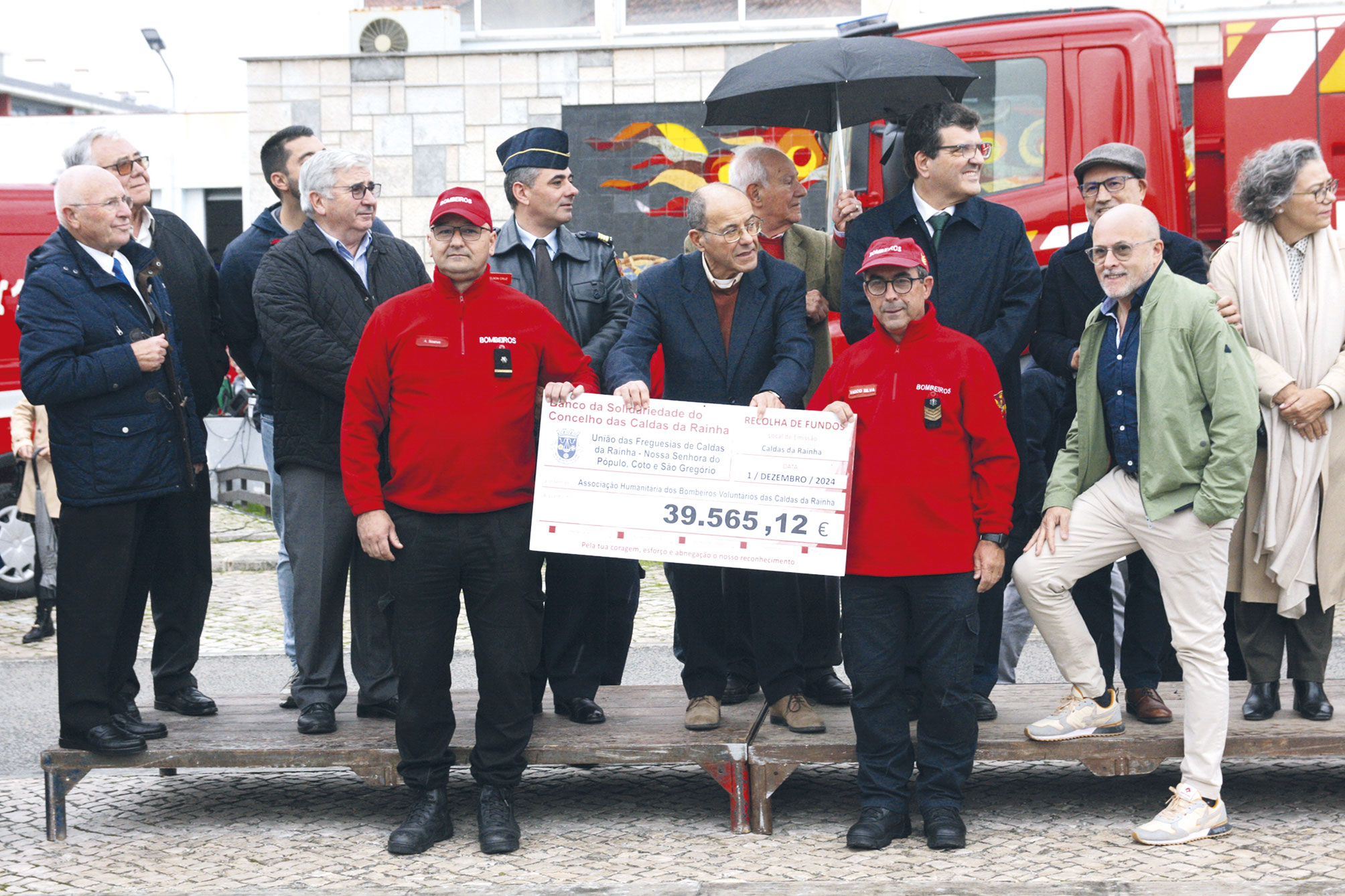 O valor exibido nos tradicionais cheques simbólicos representa o trabalho realizado pelos bombeiros, mas também pelos presidentes de junta e respetivas equipas no peditório nas ruas da cidade e porta a porta nas freguesias rurais. Nelson Cruz agradeceu essa entrega dos autarcas, mas também da Câmara das Caldas, que além do apoio que dá à corporação ao longo do ano compôs o valor com um cheque próximo dos 25 mil euros, e também aos bombeiros que comanda. “São homens e mulheres fantásticos, que para além do serviço operacional, andam há quase dois meses a fazer peditórios para melhorar o socorro e para melhorar a condição que nós temos para dar à nossa população”, destacou. Além disso, os próprios bombeiros doaram à associação, como tem sido habitual, as verbas recebidas do dispositivo de incêndios, este ano num valor próximo dos 11.800 euros.
