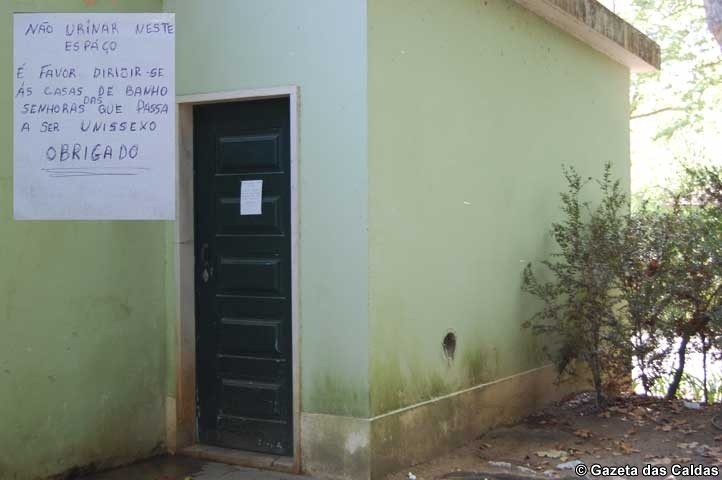 Na porta do WC dos homens há um papel que diz para estes se dirigirem à casa de banho das senhoras, que passou agora a ser unissexo. Mas só em último caso qualquer pessoa se aproxima do local, em virtude das suas más condições.