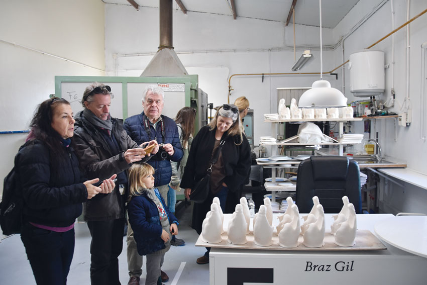 Saíram bem cedo de Tomar, rumo às Caldas, num autocarro da câmara municipal daquele concelho. A primeira paragem foi feita na Braz Gil Studio, tendo o grupo a oportunidade de visitar esta empresa que se dedica a trabalhar a porcelana para um segmento alto para marcas que estão presentes nas melhores lojas das várias capitais europeias e também do outro lado do Atlântico.
