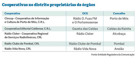 Aliás, no contexto distrital, apenas mais um jornal, o quinzenário “O Portomosense”, é propriedade de uma cooperativa, sendo que, neste caso, a Cooperativa de Informação e Cultura de Porto de Mós, também detém a Rádio D. Fuas FM.