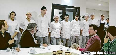 Todos os pratos foram acompanhados por vinhos bancos e tintos, e licores, servidos pelos alunos do curso de restauração e bebidas, sob orientação do formador Jorge Guilherme.