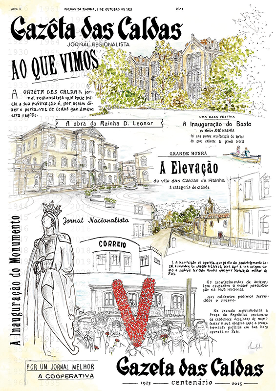 Gazeta das Caldas dá início às comemorações do seu centenário com a exposição “100 anos, 10 autores, 10 obras”, que reúne obras de cerâmica e ilustração de Bruno Reis Santos (Mantraste), Carlos Enxuto, C’Marie, Fernando Miguel, Isabel Claro (Bolota), Manuel Bandeira Duarte, Mário Reis, Nuno Bettencourt, Sílvia Jácome e Vítor Mota. A mostra, inaugurada na tarde de 16 de maio, encontra-se patente no Museu do Hospital e das Caldas até ao final do mês.