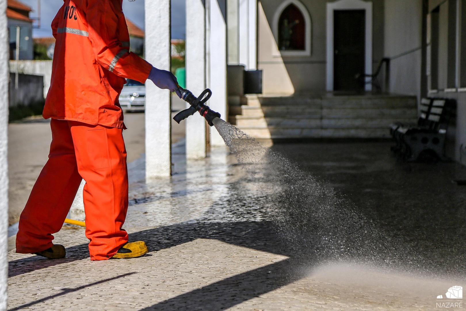 A medida segue as recomendações da Direção-Geral da Saúde e está a ser realizada pelos serviços do Município, com a colaboração dos Bombeiros Voluntários da Nazaré e da sua Equipa de intervenção Permanente.