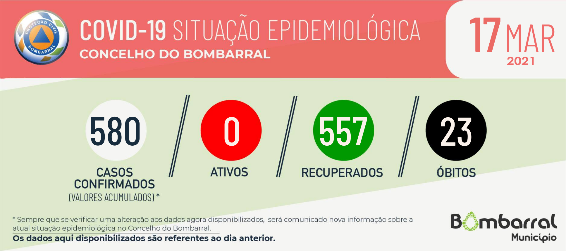 O balanço no concelho é de 580 casos confirmados, 557 recuperados e 23 óbitos.