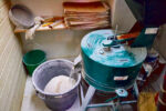 Mas voltemos aos dias de hoje, onde a alegria e a boa disposição também não faltam, apesar do sol, do calor e da palha que esvoaça em várias direcções. Quando o trigo está pronto (por altura do Verão, depois de ser semeado oito meses antes, no Outono), o processo começa com a passagem da ceifeira atadeira pelos campos, que decorre “quando vem o orvalho de Peniche”, pelas seis horas da madrugada. Depois o trigo fica no campo durante 15 dias (tal como se fazia antigamente, antes de ser transportado nos carros de bois para a eira). “Na agricultura moderna não há esse tempo de espera, mas é importante porque o trigo não morre, o trigo vive e recebe os sais da palha”, esclareceu. Daí segue então para a ruidosa, mas cuidadosa debulhadora. Quando sai, o cereal vem praticamente limpo, mas ainda vai passar por uma limpeza antes de ser moído naquilo que João Vieira chama do seu moinho de trazer por casa, uma pequena máquina, eléctrica, com mós de pedra. De seguida a farinha é peneirada (com diferentes peneiras que permitem ou não deixar passar o farelo, consoante os gostos). Daí vai acabar por ser amassada e levada ao forno para se tornar num saboroso pão, mais escuro do que estamos habituados a ver, mas com alto valor nutricional porque, afinal, “comemos para nos alimentar ou para nos sentirmos cheios?”.