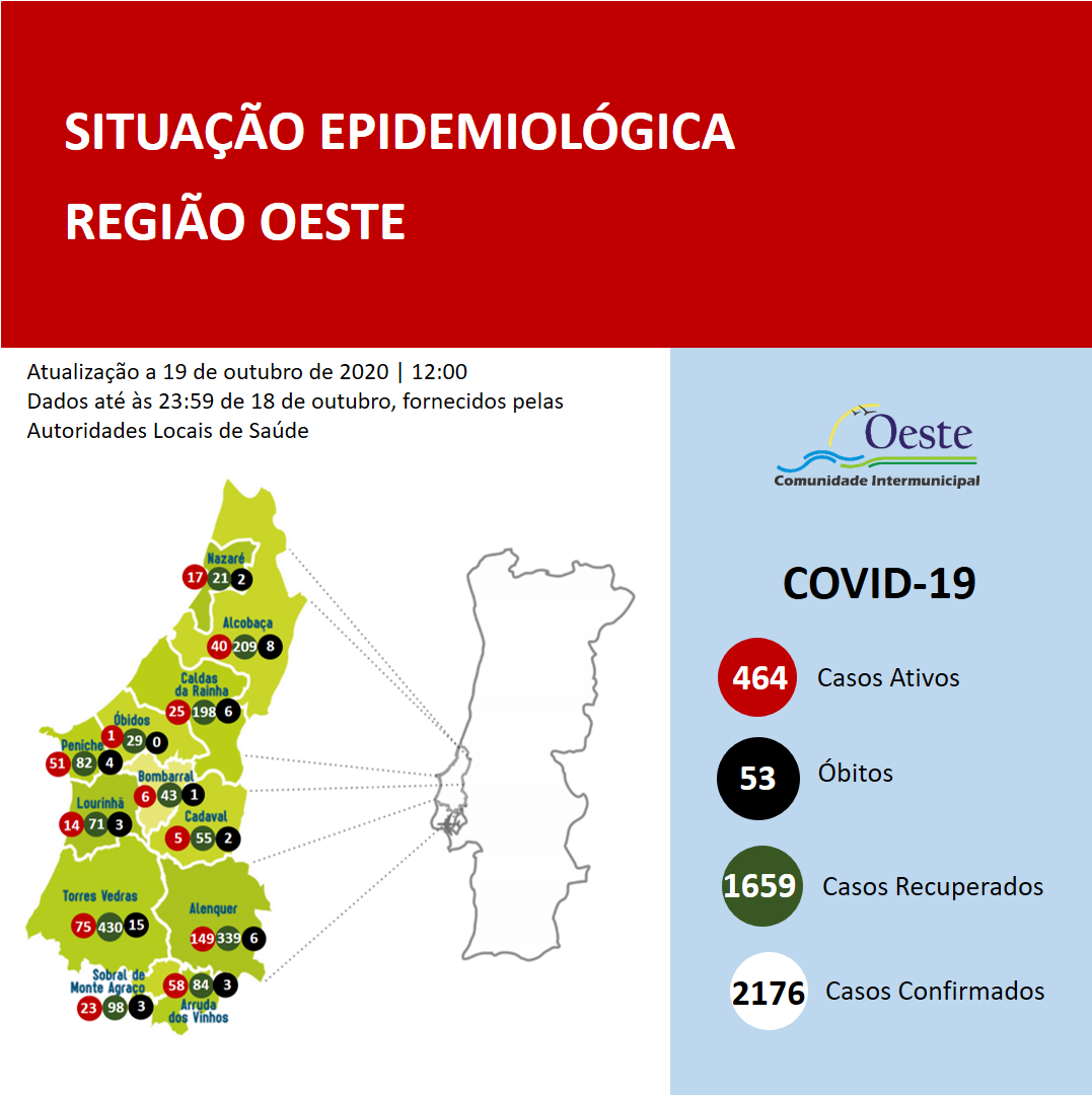 Há mais 23 casos de infeção por covid-19 na região, segundo o relatório epidemiológico desta segunda-feira da Comunidade Intermunicipal do Oeste.