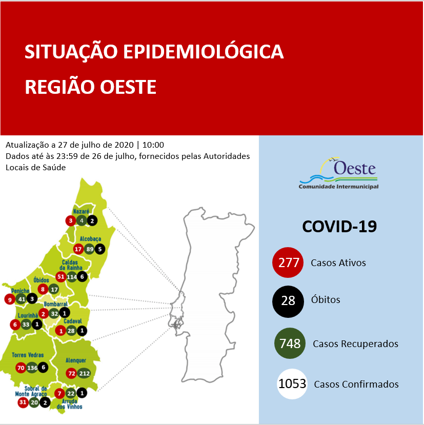 Há mais quatro infectados com covid-19 na região e onze recuperados, segundo aponta o relatório epidemiológico desta segunda-feira da Comunidade Intermunicipal do Oeste.