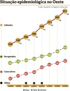 O Oeste ultrapassou a 12 de outubro a barreira dos 2000 casos confirmados de covid-19 desde o início da pandemia (o primeiro caso no Oeste foi registado nas Caldas, a 20 de março). Existem agora no conjunto dos 12 concelhos 2041 casos confirmados e 462 ativos, o maior número de casos ativos de sempre. Comparativamente com a última semana registam-se mais 105 casos ativos, tendo sido confirmados mais 201 casos.