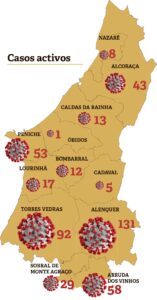 Os concelhos que apresentam a mais alta taxa de ativos por habitantes são os de Arruda dos Vinhos (mais de quatro casos ativos por cada mil habitantes), Alenquer (três casos por cada mil pessoas) e do Sobral de Monte Agraço (quase três casos por cada mil habitantes).