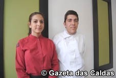 Se os nervos afectavam este jovem de 22 anos, natural das Caldas da Rainha, nada o denunciava. Com o trabalho adiantado, e a cozinha devidamente limpa, o finalista do curso de Técnicas de Cozinha/Pastelaria trocava algumas impressões com os colegas que o acompanhavam neste desafio. E mostrava aos chefs que habitualmente dirigem as ‘tropas’ que tudo estava a postos para que os pratos pudessem ser finalizados assim que as pessoas começassem a sentar-se.