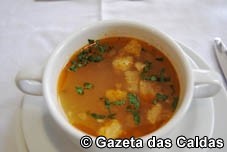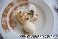 A primeira proposta – Sopa de Amêijoas da Lagoa de Óbidos – deixou no ar a perspectiva de uma ementa onde os produtos regionais iam estar em destaque, devidamente acompanhada por um vinho branco da zona de Óbidos e um tinto produzido em Alcobaça. Logo depois, um Risotto de Frutos do Mar, encimado por um mexilhão.