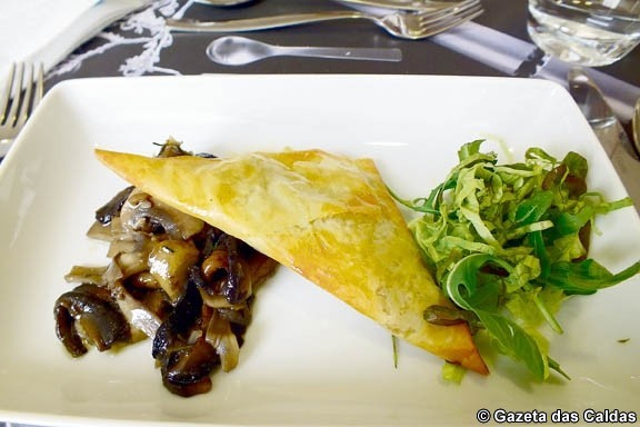 A entrada surpreendeu muito pela positiva os comensais, que se deliciaram com a chamuça de alheira com cogumelos salteados e redução de vinho da Madeira e mel. O equilíbrio entre o doce e o salgado teve resultados positivos, abrindo o palato para o que viria a seguir.