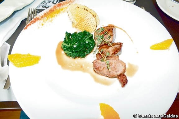 Menos conseguida, segundo os comensais com quem falámos, terá sido o magret de pato acompanhado de batata chips, espinafres salteados e redução de vinho do Porto e vinho tinto. Para alguns, a carne não estava suficientemente cozinhada para agradar.