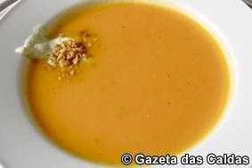 Esta surgiu em forma de Creme de abóbora com mousse de requeijão e pinhões. Contrastando com a salada leve, uma sopa de toque mais agressivo, quase picante, que disfarçou o sabor doce da abóbora, nem sempre bem tolerado. Um toque agressivo bem controlado pela mousse de requeijão, bom pormenor acrescentado pela candidata a chef. Agradável também o crocante do pinhão. Uma sopa arrojada com um elemento algo surpreendente da mousse fria na sopa quente e um toque premium do fruto seco.