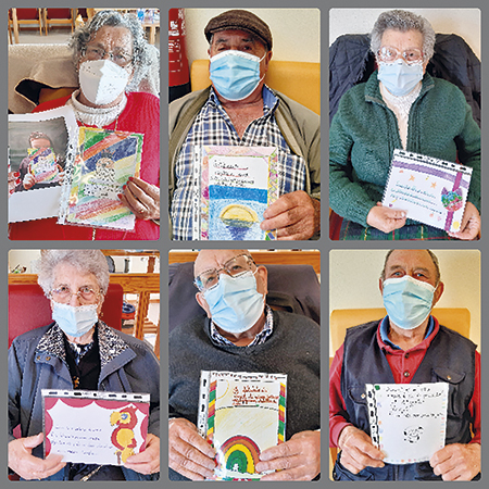 Crianças enviaram postais com frases de ânimo, poemas e anedotas. Seniores responderam com medalhas e enviaram fotos uns aos outros com as ofertas