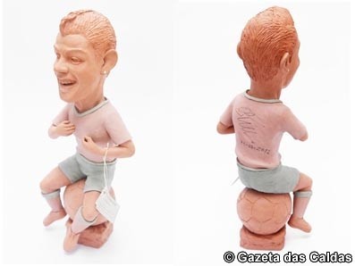 A caricatura do jogador português Cristiano Ronaldo, criada pela ceramista Paula Clemente e assinado pelo futebolista, foi vendida num leilão online a um coleccionador português por 300 libras (cerca de 375 euros).