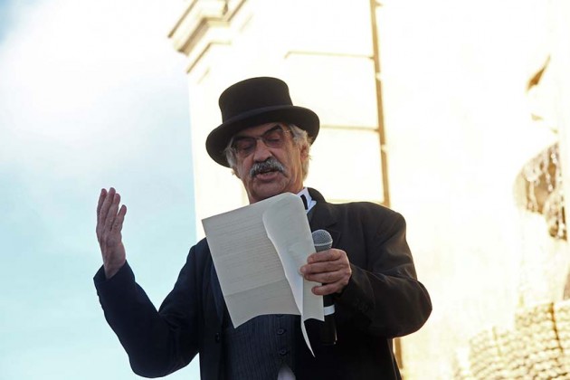 Faltavam cerca de 15 minutos para as 19h00 quando o patrono da escola, Rafael Bordallo Pinheiro, chegou ao Chafariz das Cinco Bicas e deu início oficial ao Mercado do séc. XVIII – Mesteirais e Alquimia com uma prelecção sobre as águas e o barro, pilares da identidade das Caldas. Nessa altura já o público se juntava – com muita criançada nas filas da frente – à beira do palco colocado ao topo da Praça da Fruta para acolher as encenações.
